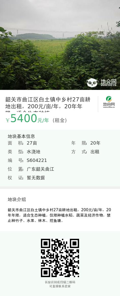 韶关市曲江区白土镇中乡村27亩耕地出租,200元/亩/年,20年年限,适合生态种植。仅限种植水稻、蔬菜及经济作物,禁止种竹子、水果、林木、挖鱼塘。